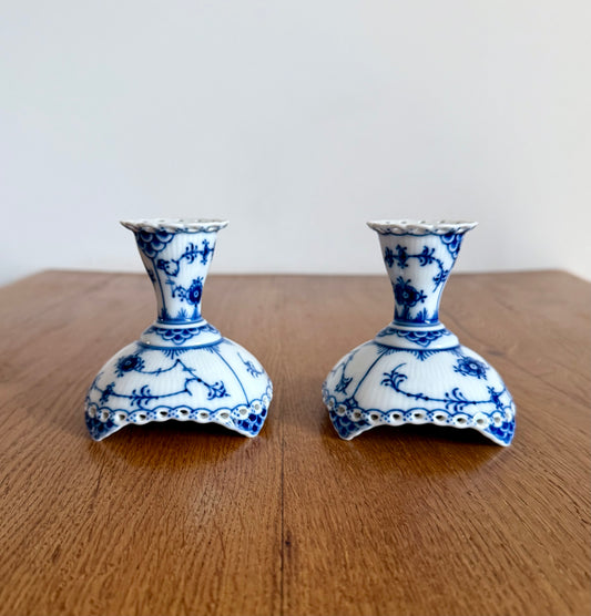 A set of two Royal Copenhagen Blue Fluted Full Lace candle sticks (#1038)