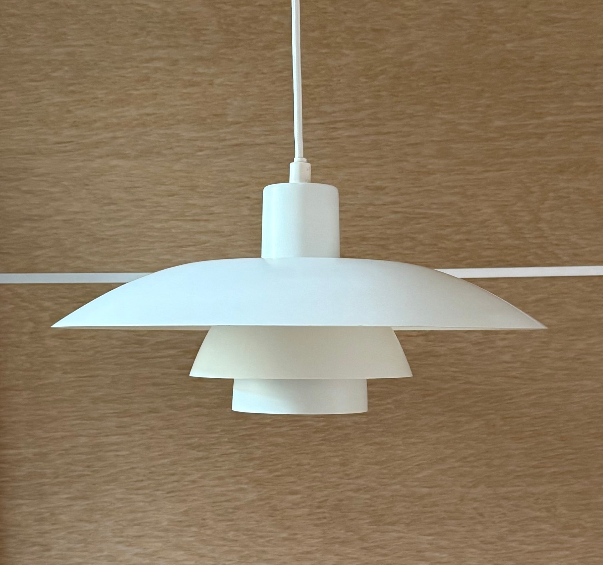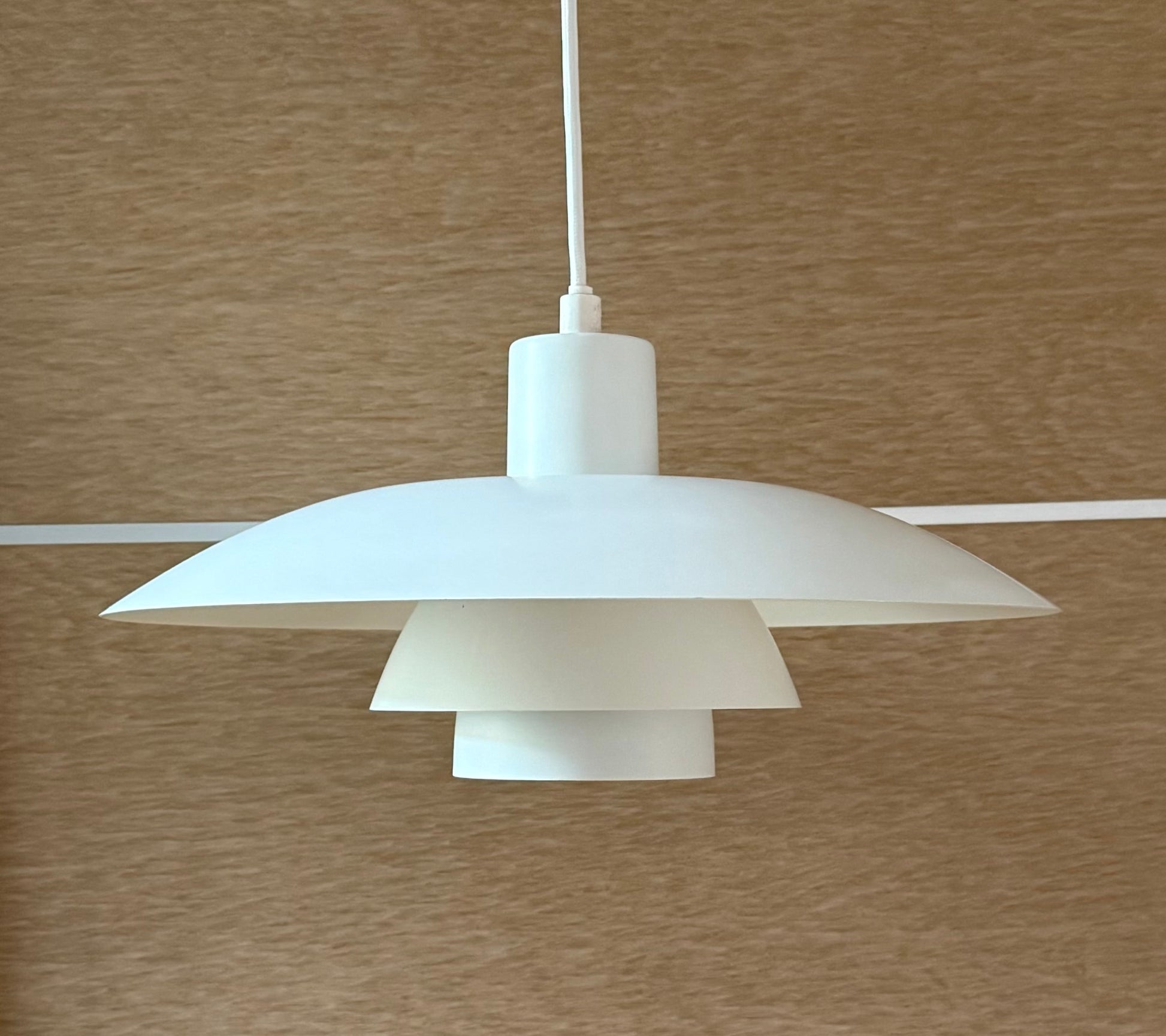 Original white PH 4/3 pendant lamp (dia: 40 cm). Designed by Poul Henningsen and produced by the Danish company Louis Poulsen. More than 40 years old and in very good condition with only a few small signs of use.